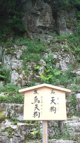 ここは天狗の信仰があり岩壁には烏天狗と天狗をかたどった岩がある。